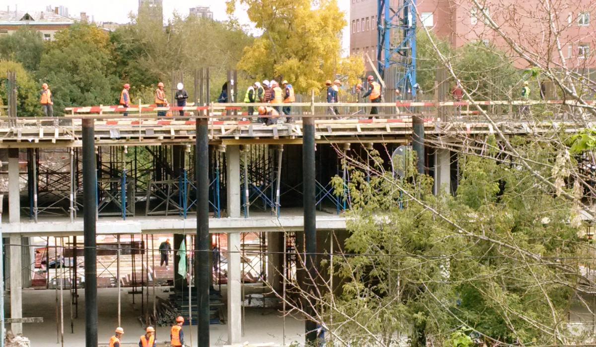Строительство идёт, это главное! В белых касках комиссия. Регулярно проводят контроль!