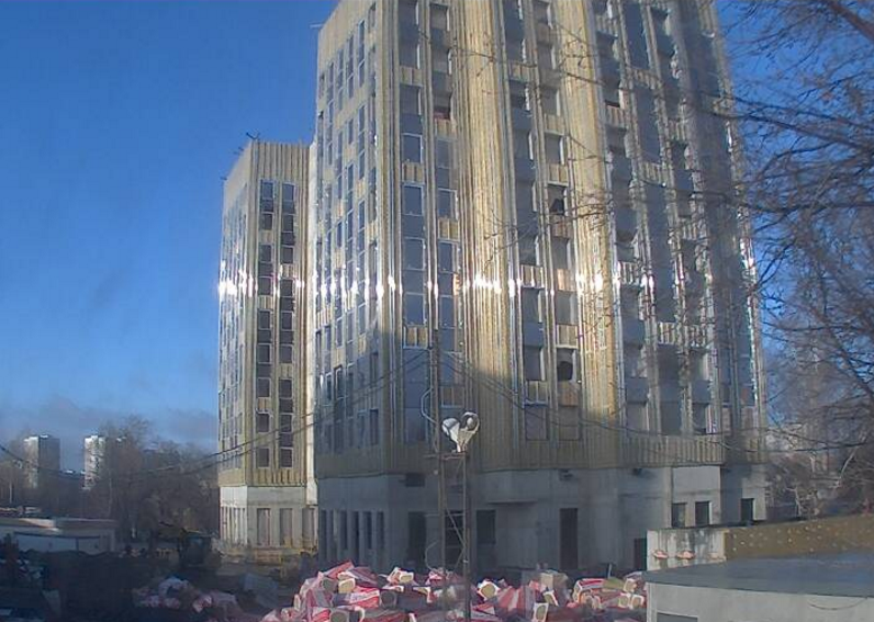 и вижу по камере, что сейчас ни одного рабочего нет снаружи стройки и над фасадом...