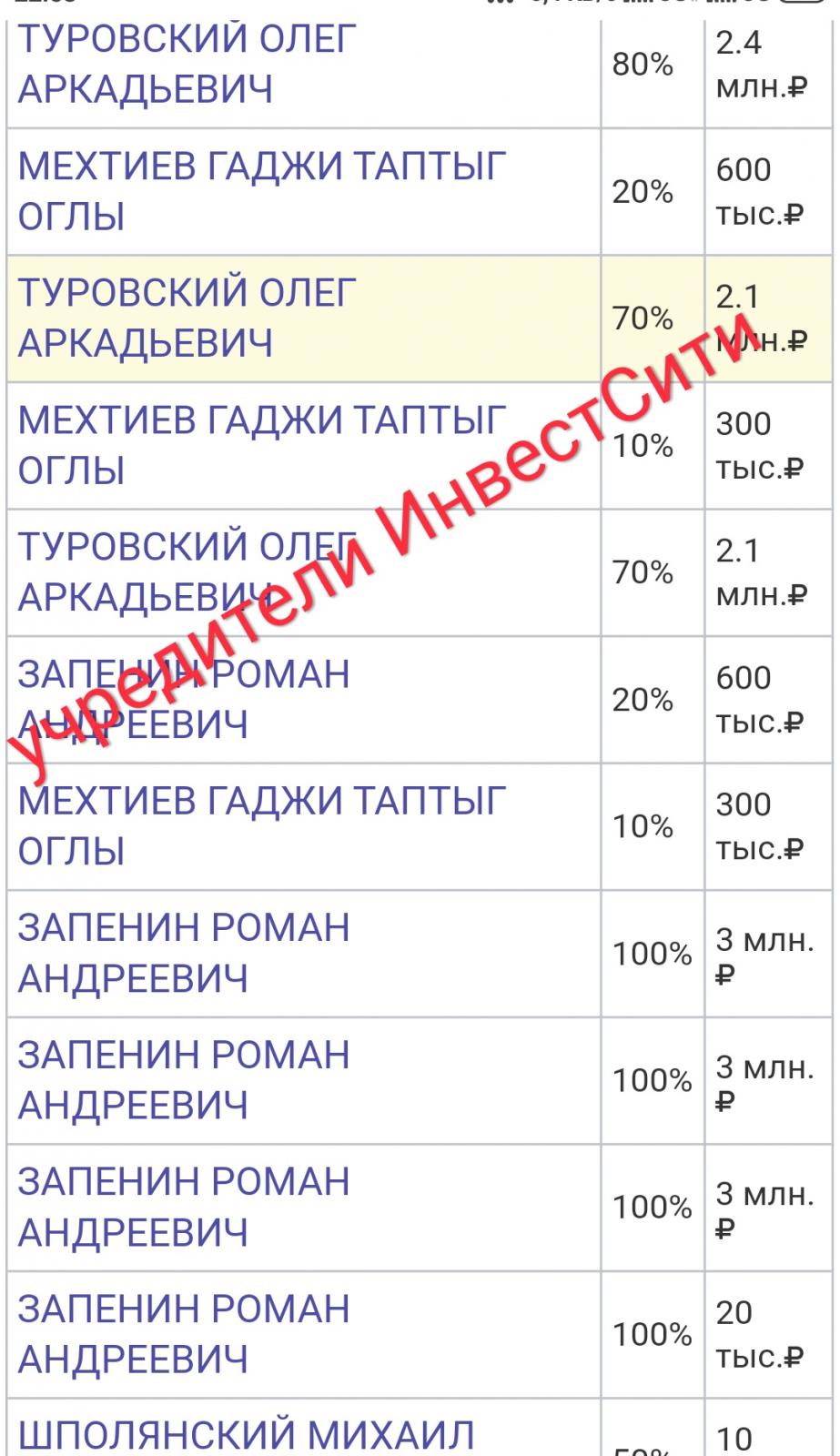 Застройщик ИнветСити в лице Бенефициара Туровского в очередной раз переоформил доли на новых подставных лиц! При этом подставные учредители инн зарегистрированы Калининградской и Владимирской области. Кредит застройщику не дали.