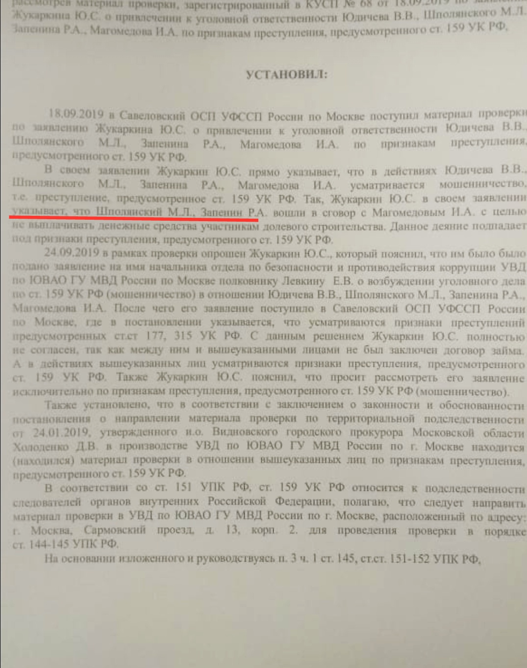 Я до последнего буду убеждена, что наш застройщик не имеет никакого отношения к хищению денег в ЖК Сходня Парк, там есть неустановленные лица, поэтому дело очень запутанное и пусть в нем разбираются компетентные органы, к нашему ЖК это не относиться