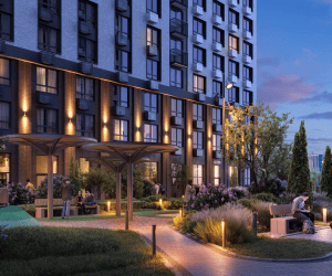Панорамные окна — виды на парки, воду и центр Москвы. Бульвар-парк с зонами для отдыха и спорта.