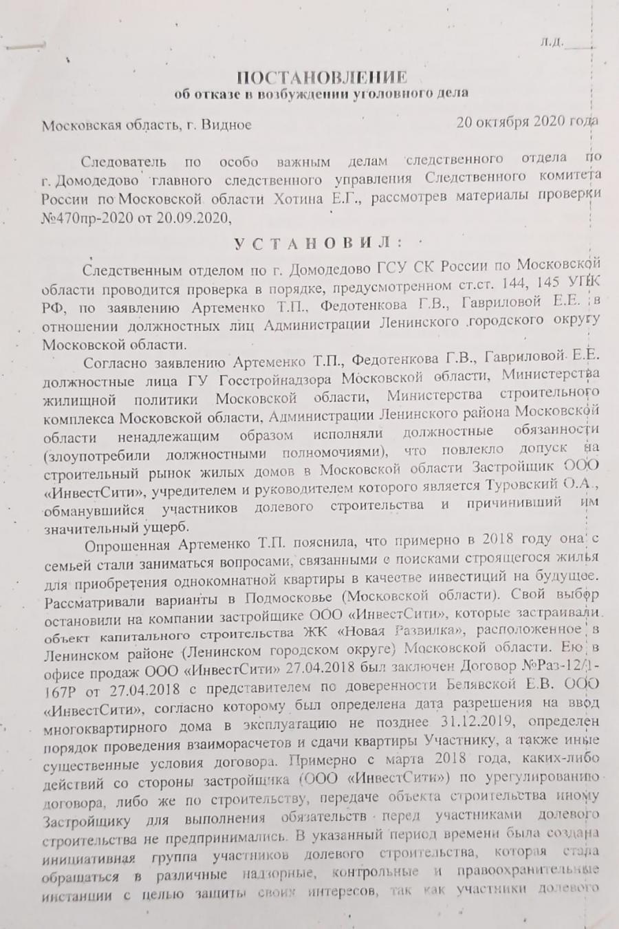 "Базанова папа" почитайте решение суда, что ВОРоватый застройщик "Инвестсити" инн 7724743980 должен был построить в срок до 31.12.2020г.