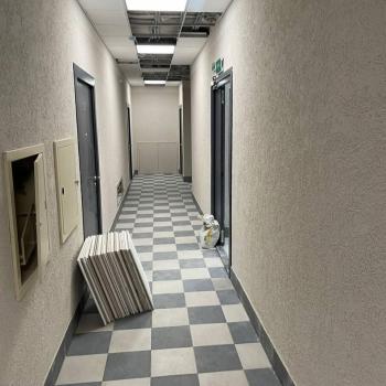 Как такое вообще возможно, потолки армстронг и стены короед это эконом офисы нулевых годов, которые давно так не делают. Разве только в бюджетных учреждениях. Ну хоть плитка на полу, а не бетон )