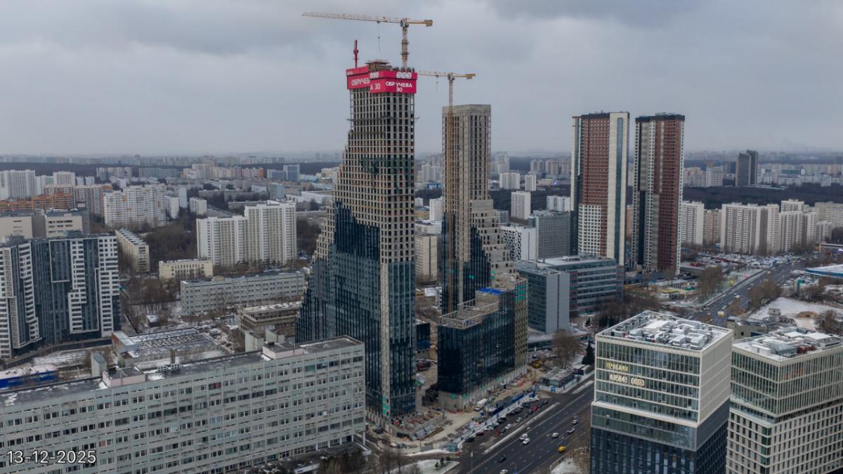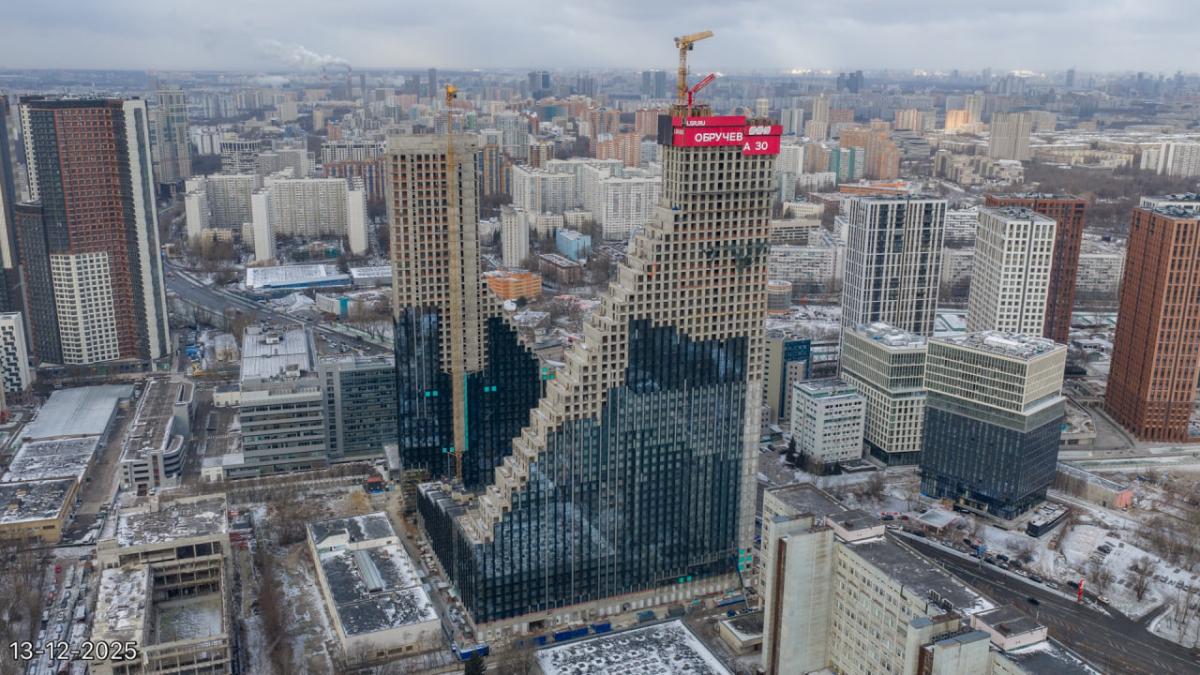 Новый жилой комплекс возводится в шаговой доступности от метро «Калужская». «Обручева, 30» — это две башни высотой 150 и 200 метров с зеркальными фасадами. Архитектурный облик зданий создали специалисты авторитетного бюро «Камень».