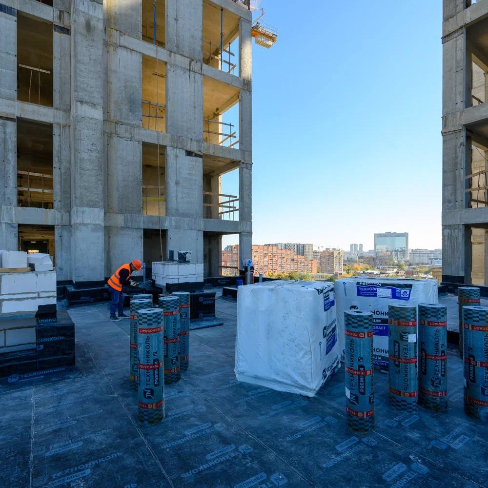 На текущий момент завершается устройство кровли подземного паркинга – работы выполнены на 99%.
