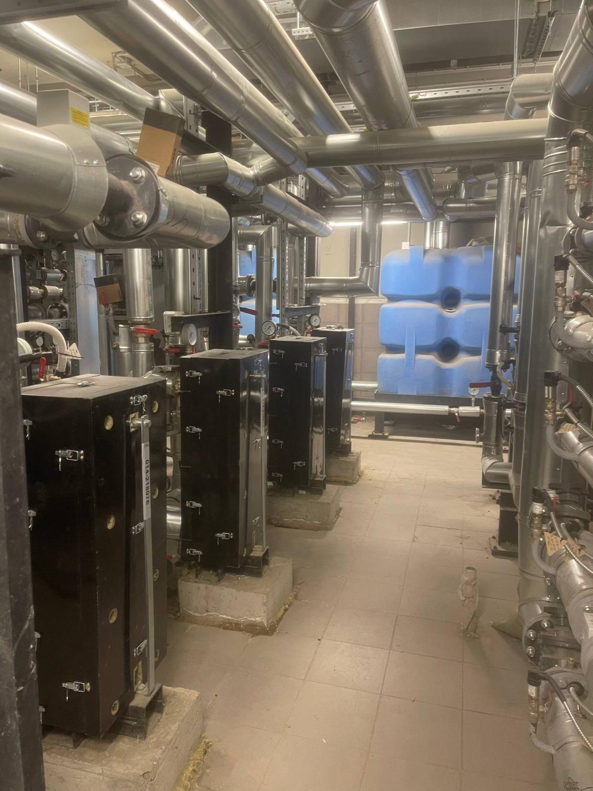 Теперь о внутренних пространствах. На финишной прямой работы по устройству инженерных сетей в подземной части — 98,5%. Программируем автоматизацию здания. Проложен силовой кабель, завершается устройство наружной сети водостока.