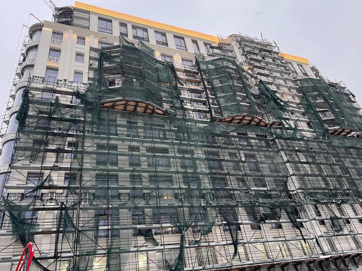 Приступили к укладке мрамора в лобби — пространство площадью 660 кв. м будет впечатлять своим масштабом и утончённостью.