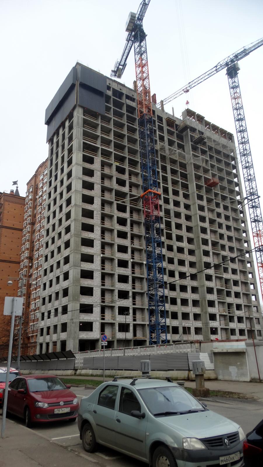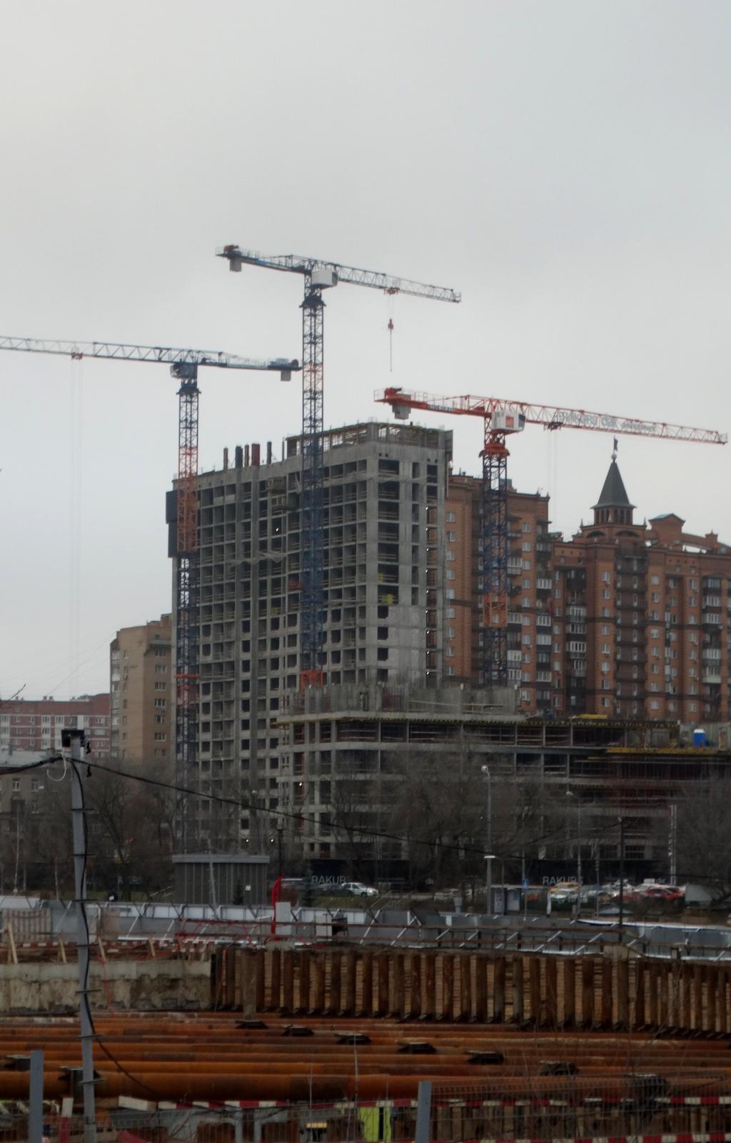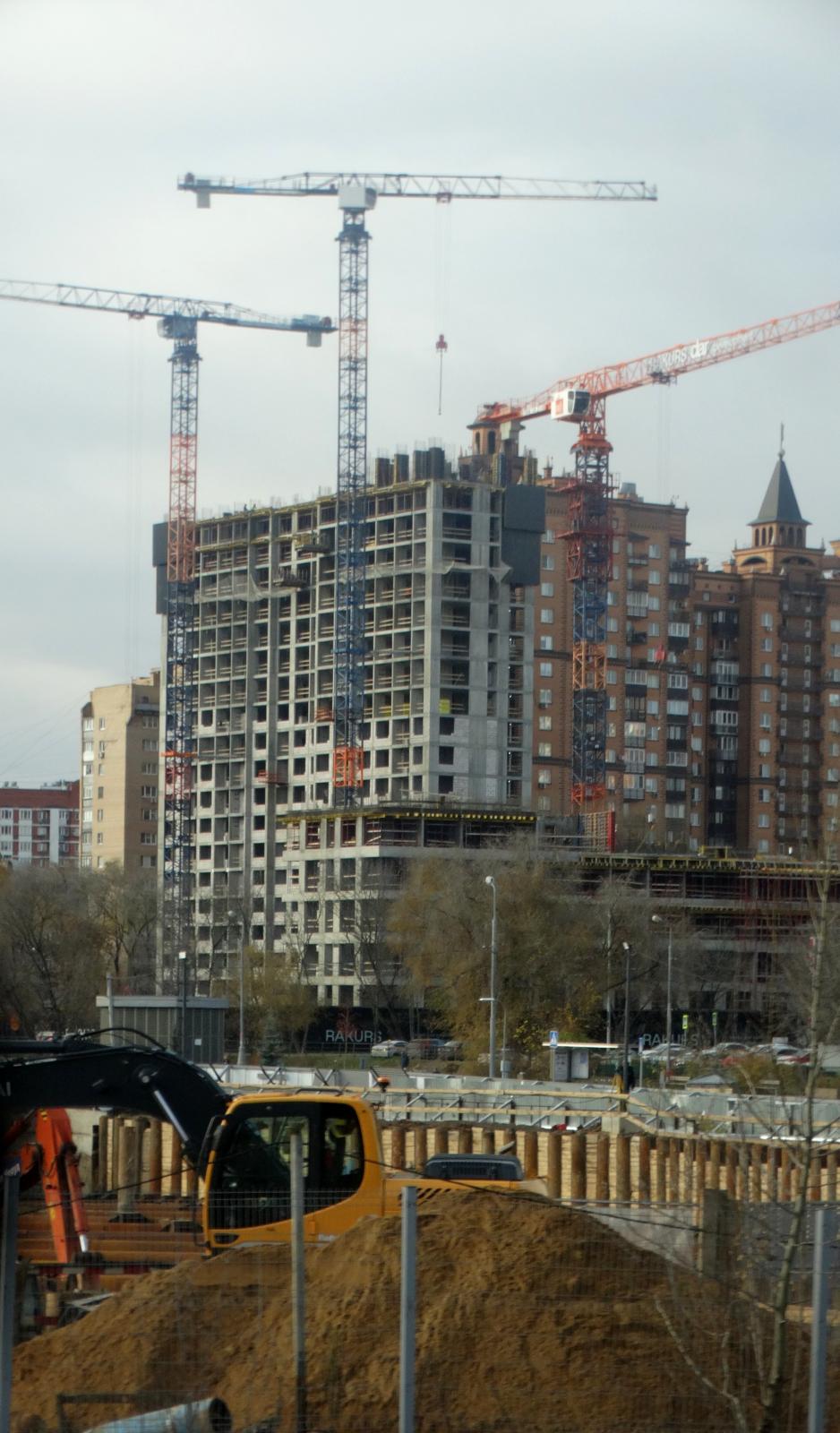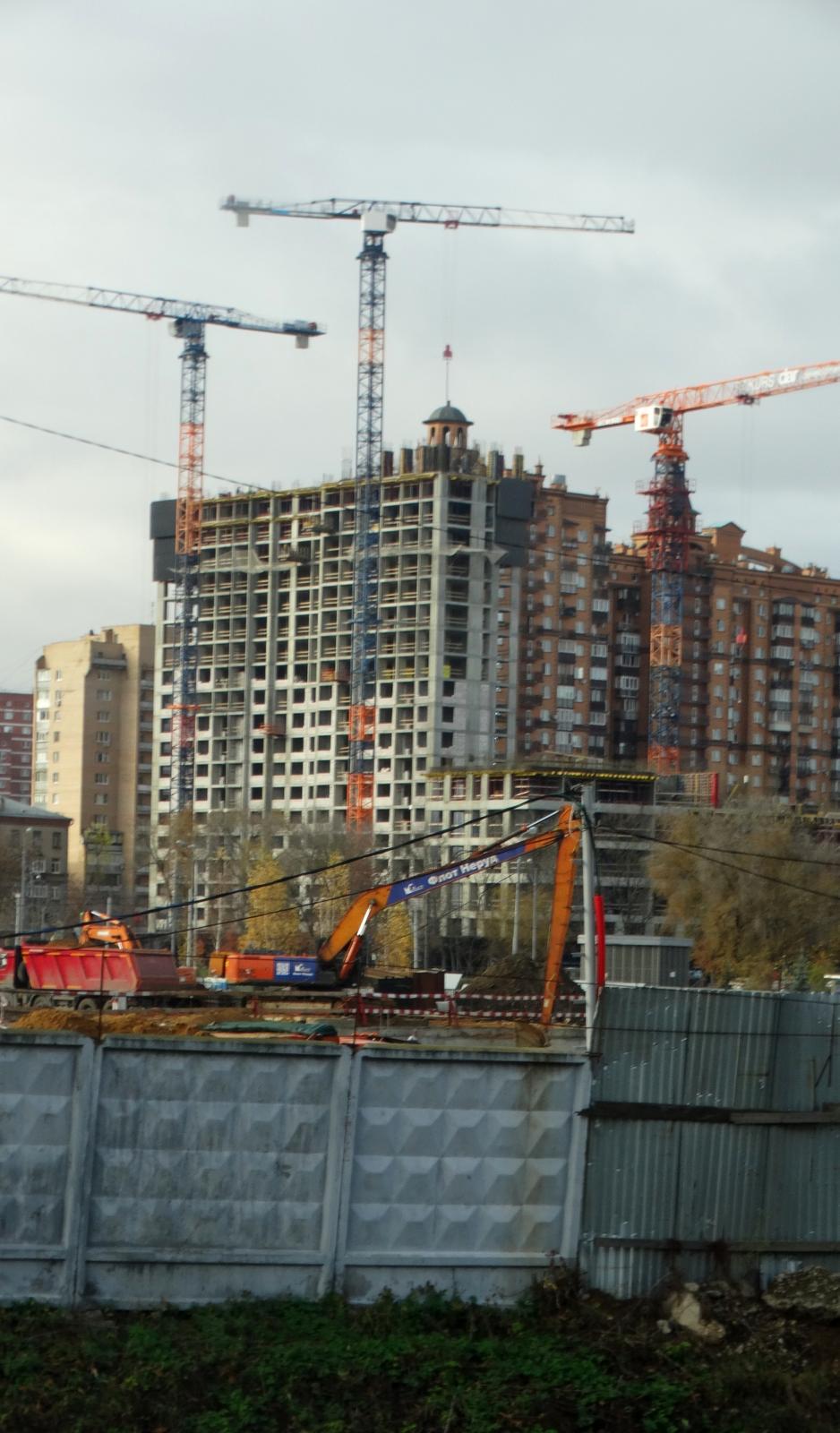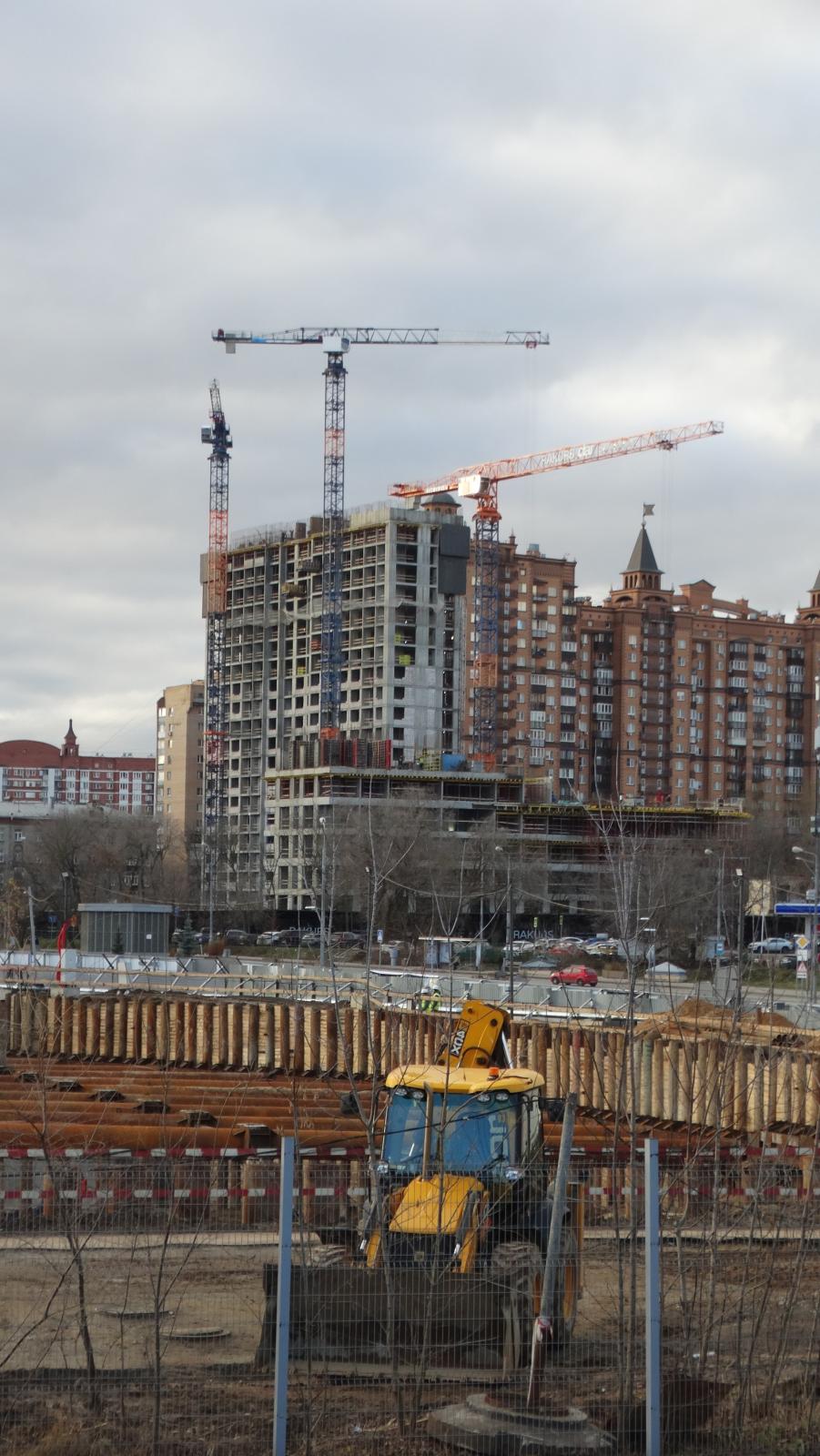 Ограждение котлована начали в ноябре прошлого года забуривать, саму выемку грунта попозже. С 2004-го года на большинстве коммерческих и существенной части бюджетных проектов в Москве знаменитое "год подземка, год надземка, год отделка" стало или обыденностью, или порою недостижимой мечтой. Да, иной раз строили и за пару лет, но весьма и весьма редко, в отличии от самого конца 1990-х и начала нулевых, когда можно сказать рекорды скорости ввода объектов устанавливали. Типа как 16-ти этажная Новая Звезда ДонСтроевская, тоже в районе Октябрьского Поля, на улице Соколовского, которую с нулевого уровня до визуальной готовности включая благоустройство прилегающей территории за 9 месяцев возвели в 2000-м году.