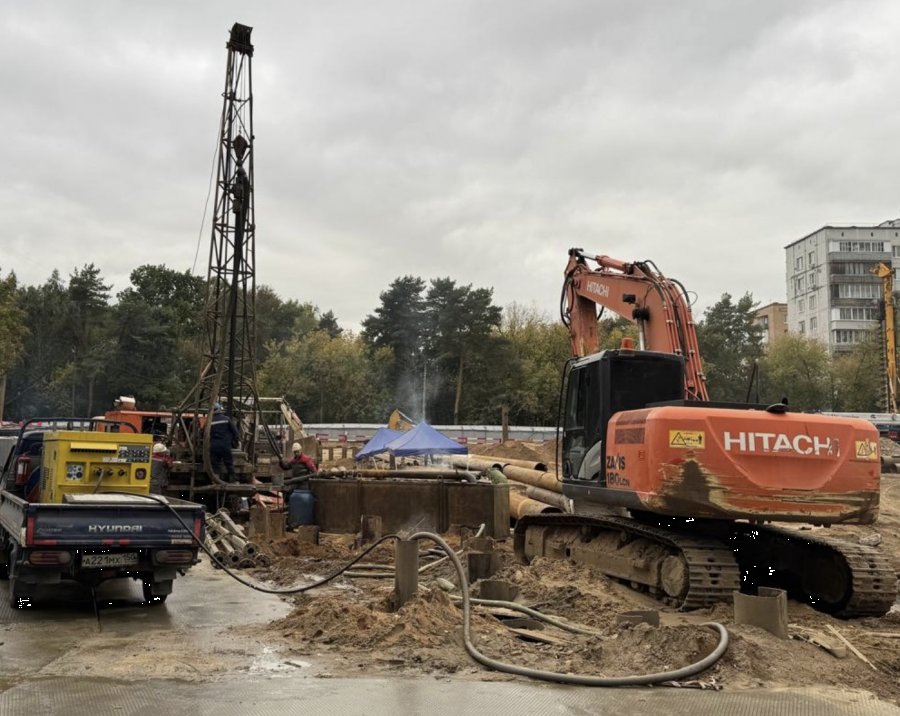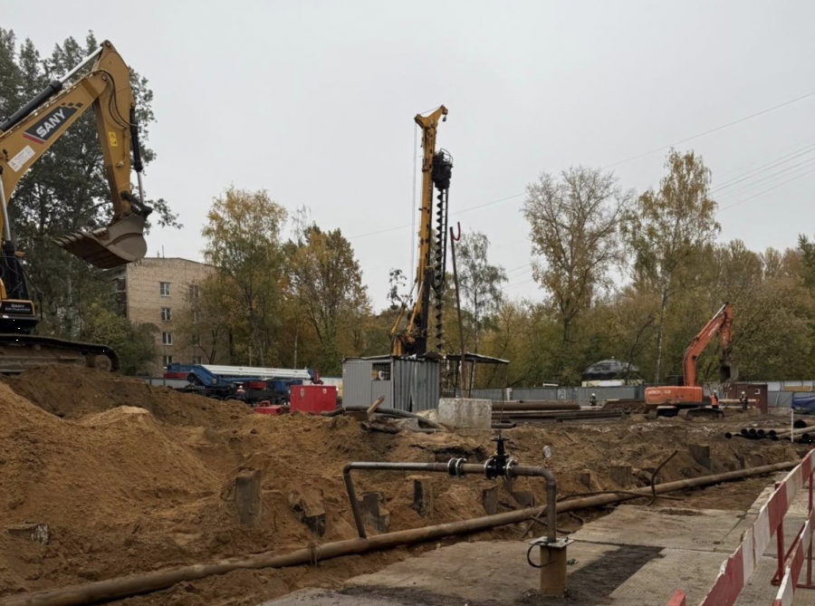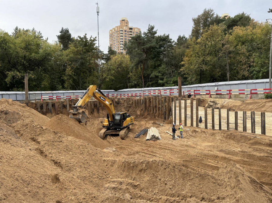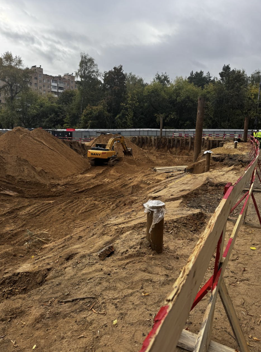 Стройка уже начала активно двигаться. Уже и техника есть и строители. Вот фото от начала сентября.