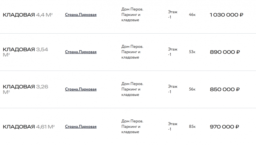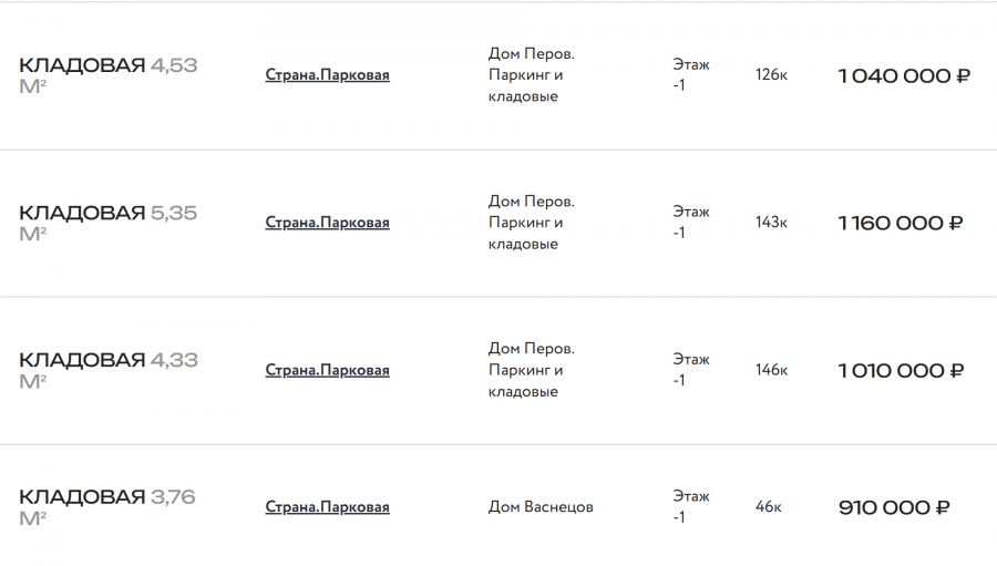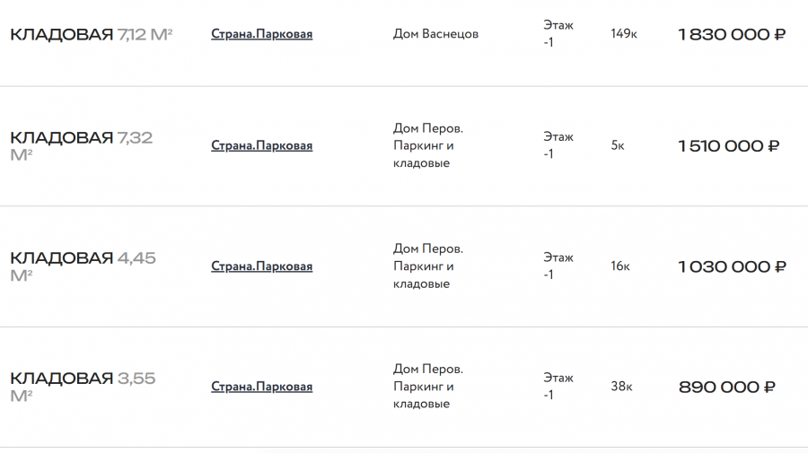 Разброс цен на кладовки зависит от метража. Вот скрины с ценами, или можете сами зайти на сайт застройщика и там посмотреть весь список продаваемых кладовок.