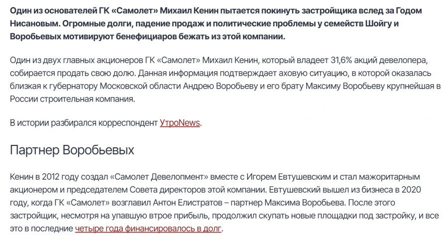 Вы реально считаете, что Самолет ждут такие серьезные последствия лишь из за смерти одного акционера? Я так не думаю. К тому же обыски прошли, никаких нарушений не выявили, уголовные дела не стали заводить из-за отсутствия состава преступления.