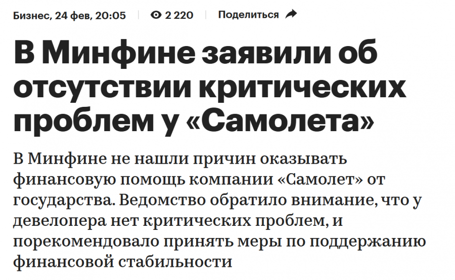 Уже отказало государство. Так что Самолет будет барахтаться сам. Но долго он точно не протянет.