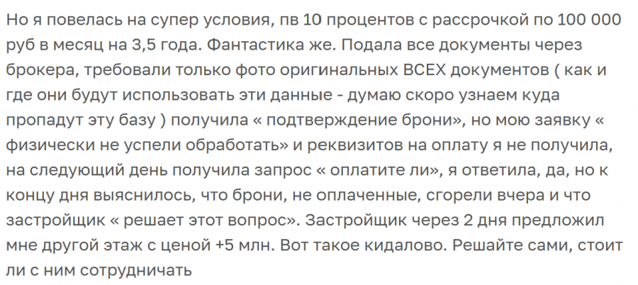 Тут окрыли бронь, но люди пишут, что застрой кидает на бронь. Не знаю верить или нет, но не хочется оказаться в такой же ситуации. Вот думаю сейчас, как быть.