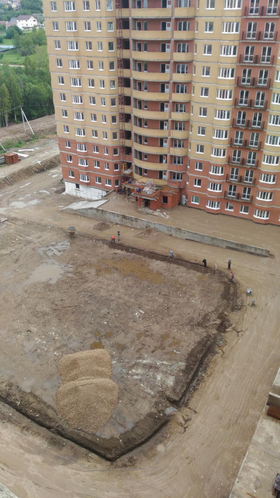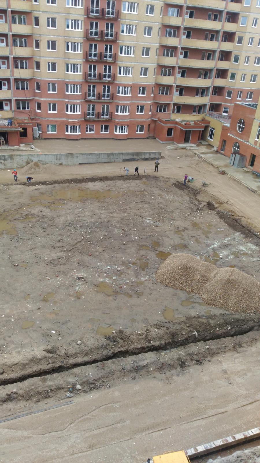 за бытовками отсыпано грунтом чтоб мы весной не уплыли, там будет все облагорожено. а пока так.